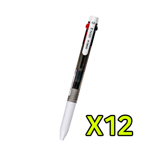 [동아] 이온3 3색볼펜 0.5mm(흑바디)_12개입