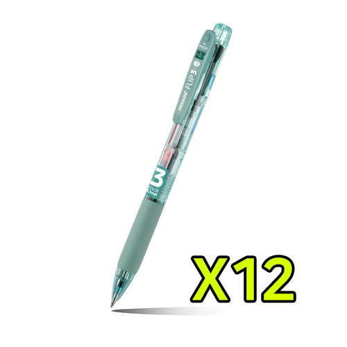 [모나미] 플립3 3색볼펜 0.5mm(세이지그린바디)_12개입