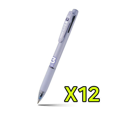 [모나미] 플립3 3색볼펜 0.5mm(라벤더바디)_12개입