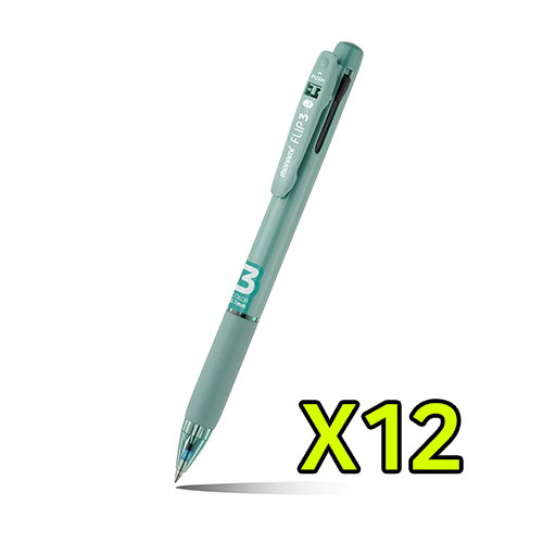 [모나미] 플립3 3색볼펜 0.7mm(세이지그린바디)_12개입