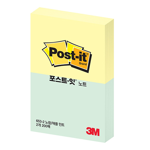 [3M] 653-2 포스트잇노트(노랑/애플민트)