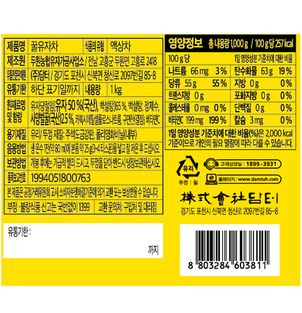 [담터] 꿀유자차_1KG