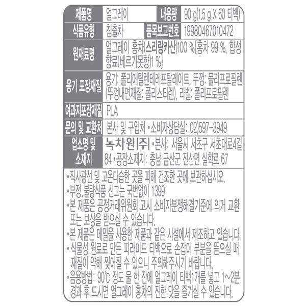 얼그레이 홍차(스리랑카산)100%,{홍차99%,합성향료(베르가못향)1%}