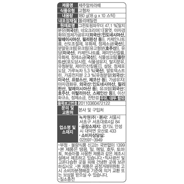 그린토핑파우더47.1%[탈지분유(미국산),네오크리마(1)[물엿,야자경화유{정제가공유지(외국산:인도네시아산,말레이시아산,필리핀산 등)},카제인나트륨,산도조절제,유화제,정제소금(국산)],분말유크림[유크림{유고형분(호주산)},유당(미국산),카제인나트륨,제이인산칼륨] 등
