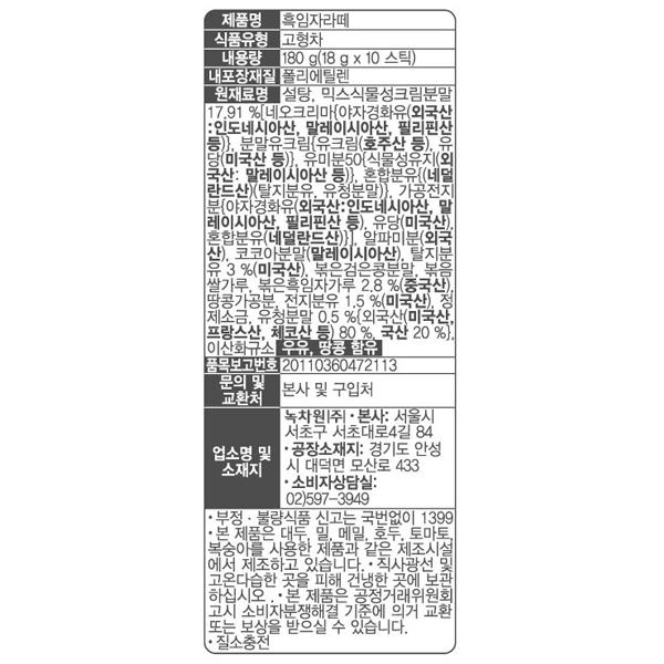 설탕,믹스식물성크림분말17.91%[네오크리마{야자경화유(외국산:인도네시아산,말레이시아산,필리핀산)},분말유크림{유크림(호주산) 등}, 유당(미국산 등)}, 혼합분유{(네덜란드산)(탈지분유,유청분말)},가공전지분{야자경화유(외국산:인도네시아산,말레이시아산 등)}]