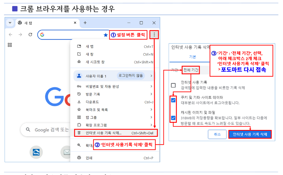 오류시 처리 해볼 수 있는 방법 안내 드립니다.