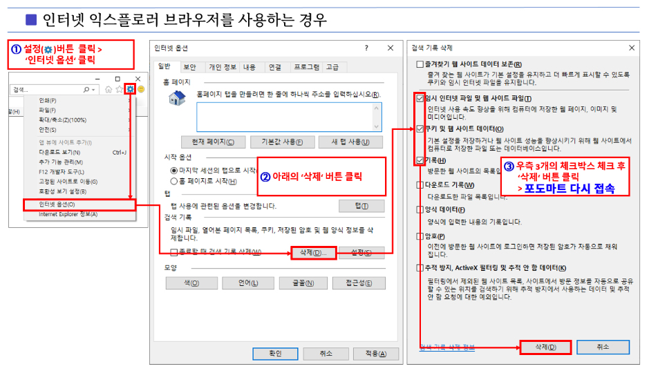 오류시 처리 해볼 수 있는 방법 안내 드립니다.