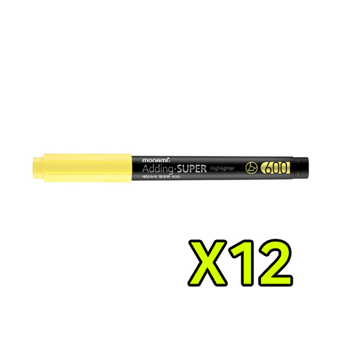 [모나미] 에딩슈퍼형광펜 600(파스텔옐로우)_12개입