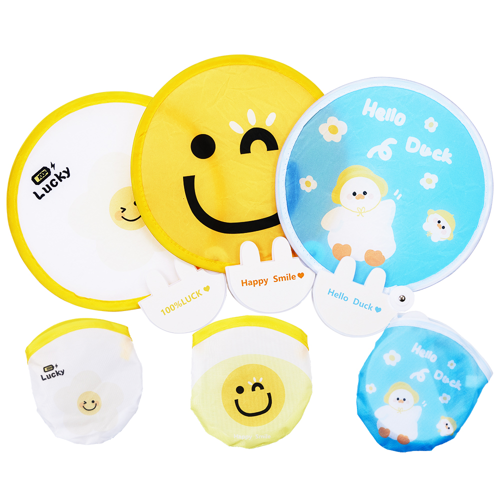 원터치 접이식 부채 케이스포함 원형 캐릭터 스마일