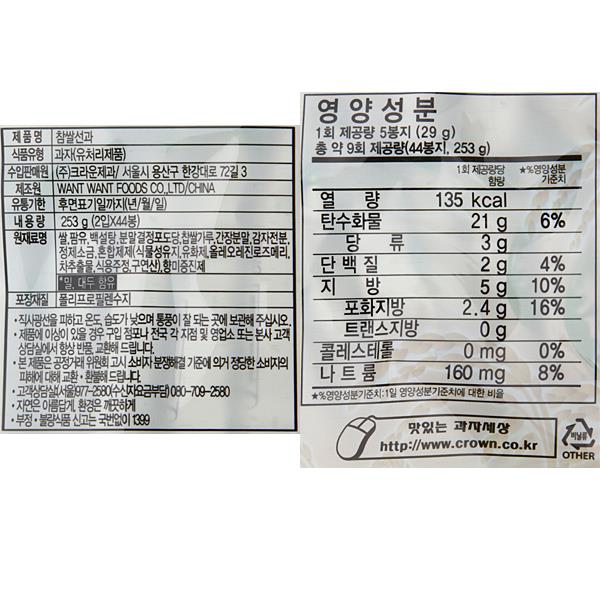 쌀,팜유,백설탕,분말결정포도당,찹쌀가루,간장분말,감자전분,정제소금,혼합제제(식물성유지,유화제,올레오레진로즈메리,차추출물,식용주정,구연산),향미증진제 |