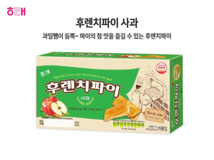 밀가루1{밀(미국산)},마가린,[가공유지{팜유류(말레이시아산),야자경화유(인도네시아산),팜유류(말레이시아산),대두유,가공버터],가당사과{사과(국산),설탕,펙틴,비타민C},설탕,밀가루2,물엿,마가린(경화유),정제소금,혼합식용유,유화제,쇼트닝, 등 |