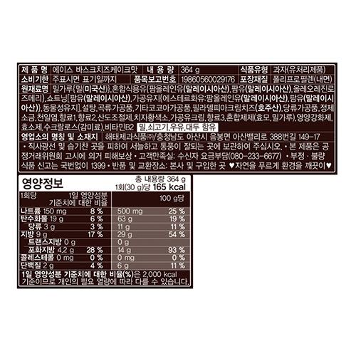 열량165kcal[1회(30g)당], 탄수화물19g(6%), 당류3g(3%), 단백질2g(4%), 지방9g(17%), 포화지방4.2g(28%), 트랜스지방0g, 콜레스테롤0mg(0%), 나트륨150mg(8%) |